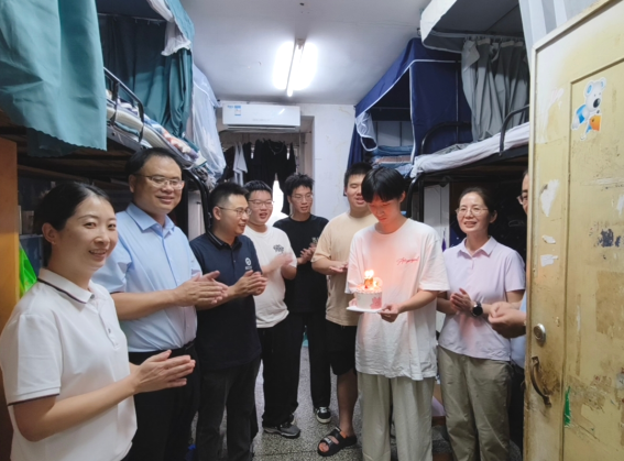 当天恰好是大数据管理与应用专业潘恩泽同学的生日,公司暖心地提前准备了生日蛋糕,当老师们捧着精心定制的蛋糕突然出现在他的宿舍时,惊喜和感动瞬间洋溢在整个寝室。在老师和舍友的祝福声中,潘恩泽同学点燃蜡烛,许下了进入大学后的第一个愿望。这份突如其来的惊喜,让他真切感受到了永利yl23411大家庭的温暖与关怀。於世为勉励同学们:“要珍惜大学时光,既要夯实专业基础,也要积极参与实践,成为兼具技术创新能力和人文关怀精神的复合型人才。”新生们纷纷表示,领导和老师的到访让他们感受到了家的温暖,在大学当中一定加倍努力,不辜负老师和家长的期许。